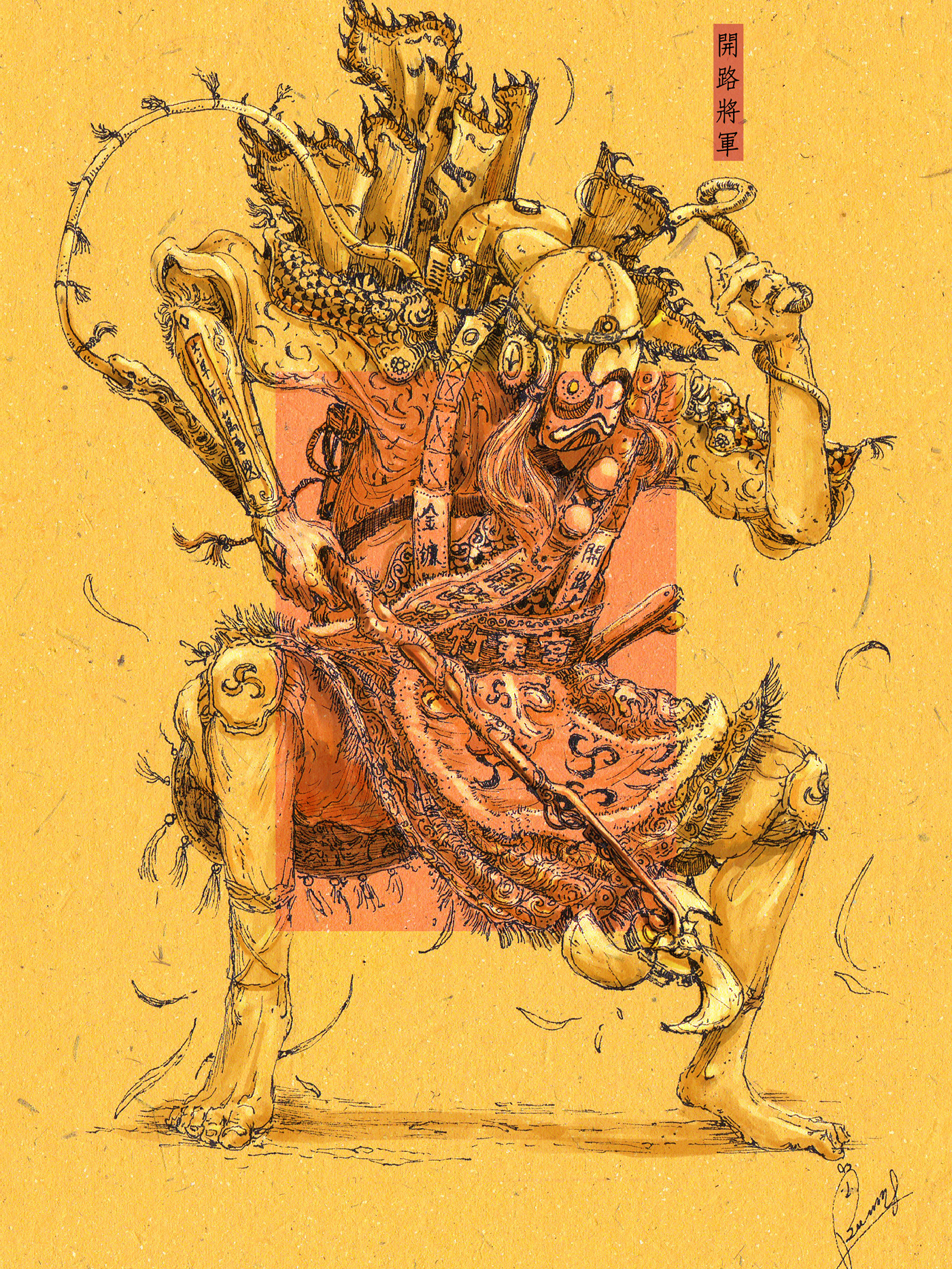 Mech"Ghost Eater" is refers 食鬼大將(General who eats ghost),which belongs to "the 36 generals" in Taiwan. The design of the mech is focus on ghost-eating and digestion.